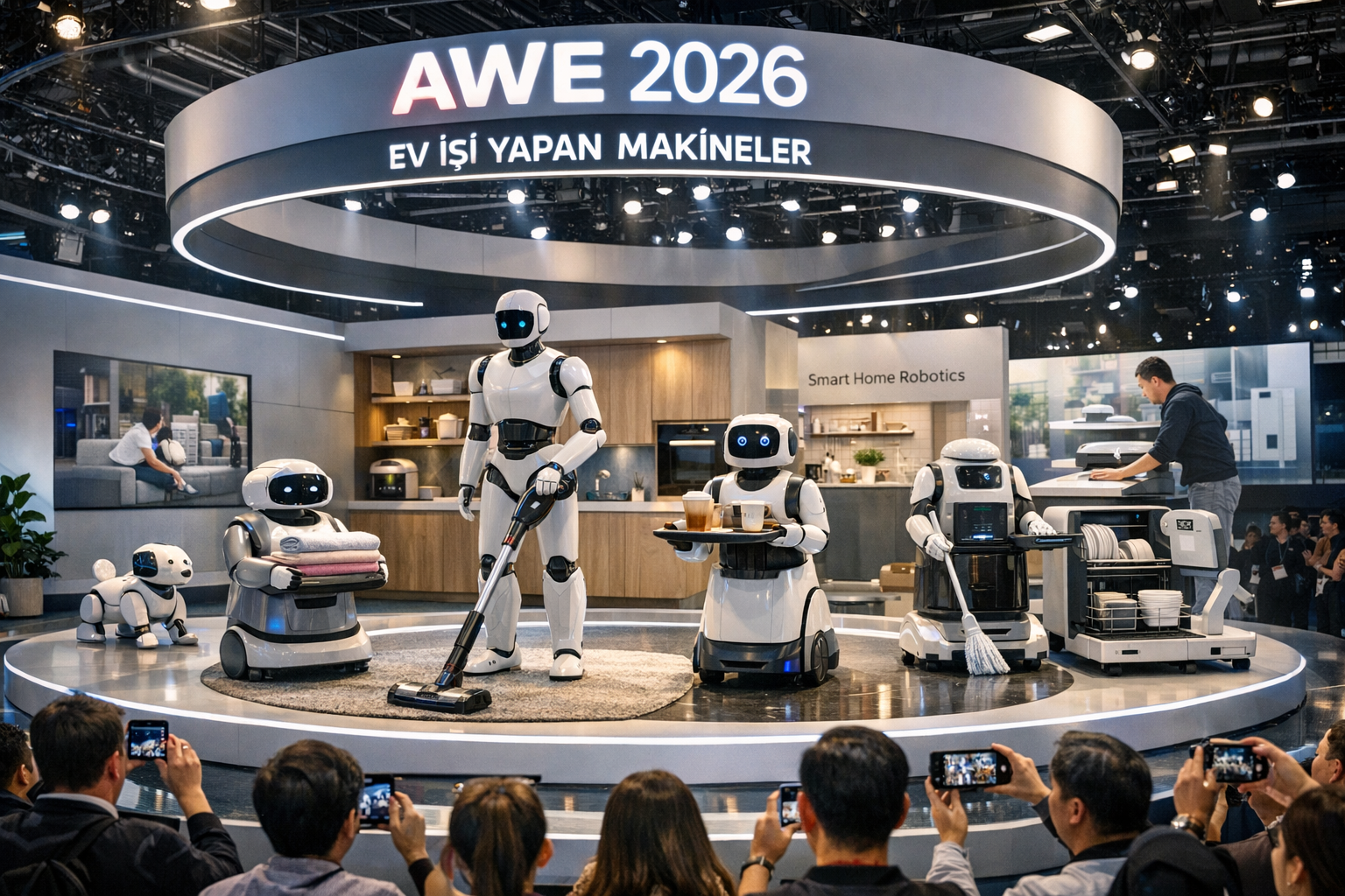 AWE 2026, ev robotlarının yalnızca dikkat çeken bir fuar gösterisi olmaktan çıkıp belirli ev işlerine odaklanan ürünlere dönüştüğünü gösteren etkinliklerden biri oldu. 12-15 Mart 2026’da Şanghay’da düzenlenen fuarda 1.200’den fazla şirket yer aldı; resmi organizasyon ve Japon basını, robotların bu yılın en görünür başlıkları arasında olduğunu aktardı.