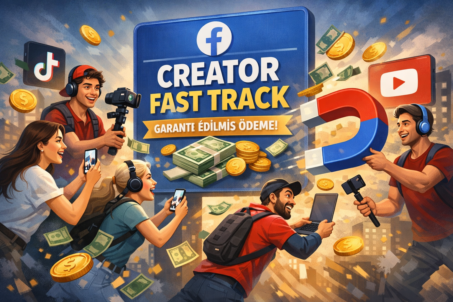 Facebook Creator Fast Track, Meta’nın 18 Mart 2026’da duyurduğu, başka platformlarda kitlesi olan içerik üreticilerini Facebook’ta daha hızlı büyütmeyi hedefleyen bir programdır. Programın öne çıkan tarafı; uygun Reels içerikleri için ek erişim desteği, sınırlı süreli sabit ödeme ve Facebook’un gelir araçlarına daha hızlı giriş imkânı sunmasıdır.